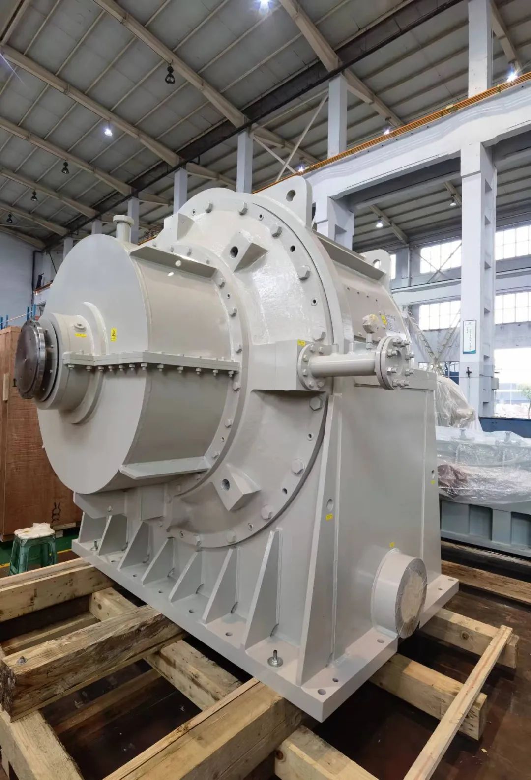 該齒輪箱應用于新型二氧化碳儲能工程驗證項目關鍵設備,在用電低谷期,利用多余電力將常溫、常壓的二氧化碳氣體壓縮為液體,在用電高峰期,利用存儲的熱能加熱液態二氧化碳至氣態,驅動汽輪機發電。該齒輪箱為多軸輸出結構,輸出功率為11MW,節圓線速度138.5m/s,大齒輪直徑約2m,加工精度要求高,屬于精密大型薄壁件齒輪,加工難度較高。該臺齒輪箱無論是設計、制造均達到國內水平,為多軸齒式壓縮機或膨脹機的國產化奠定了基礎。