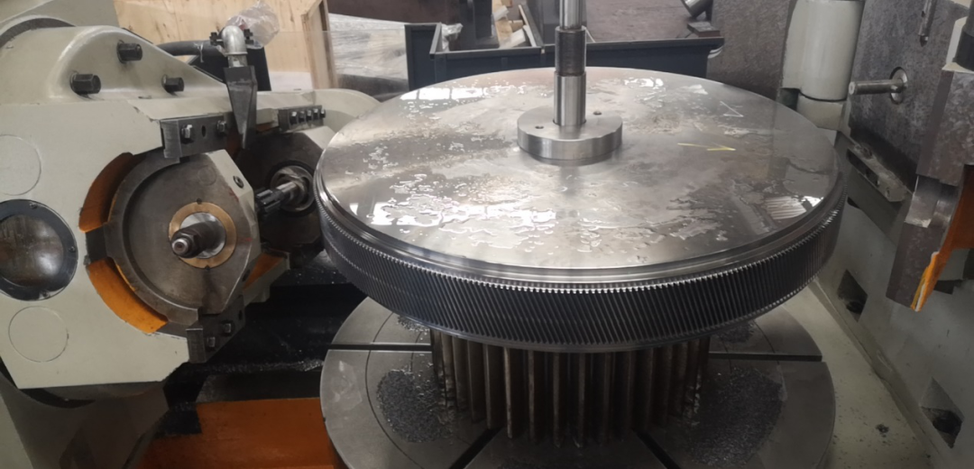 用戶在我司機加車間驗收新加工制造的大齒輪